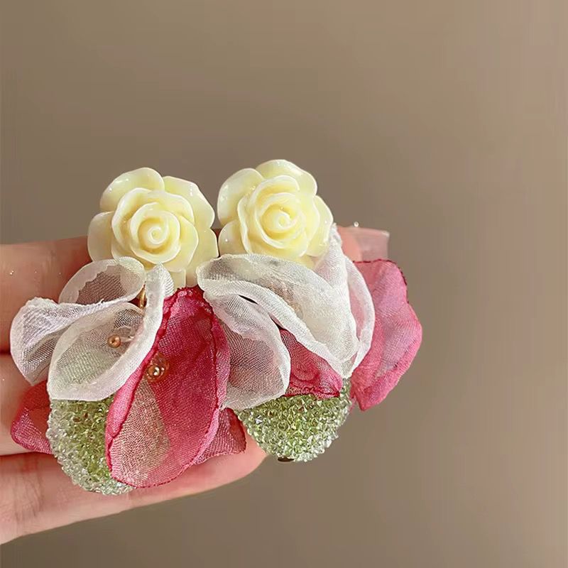 Korean-style fabric flower earrings